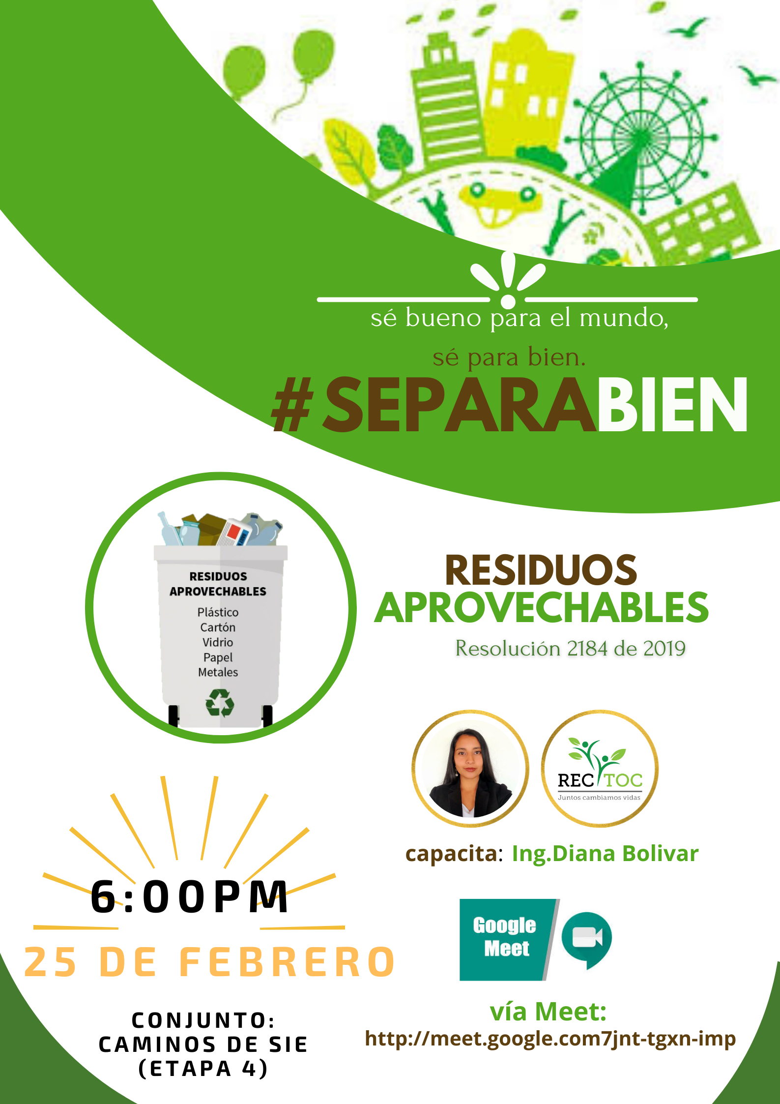 De la manera mas atenta me dirijo a ustedes con el fin de extenderles la invitación a la capacitación virtual sobre materiales aprovechables y el nuevo código de colores, la cual se llevará a cabo el próximo 25 de febrero del presente año, a las 6:00 p.m., para ingresar a dicha reunión adjunto a continuación el correspondiente link.